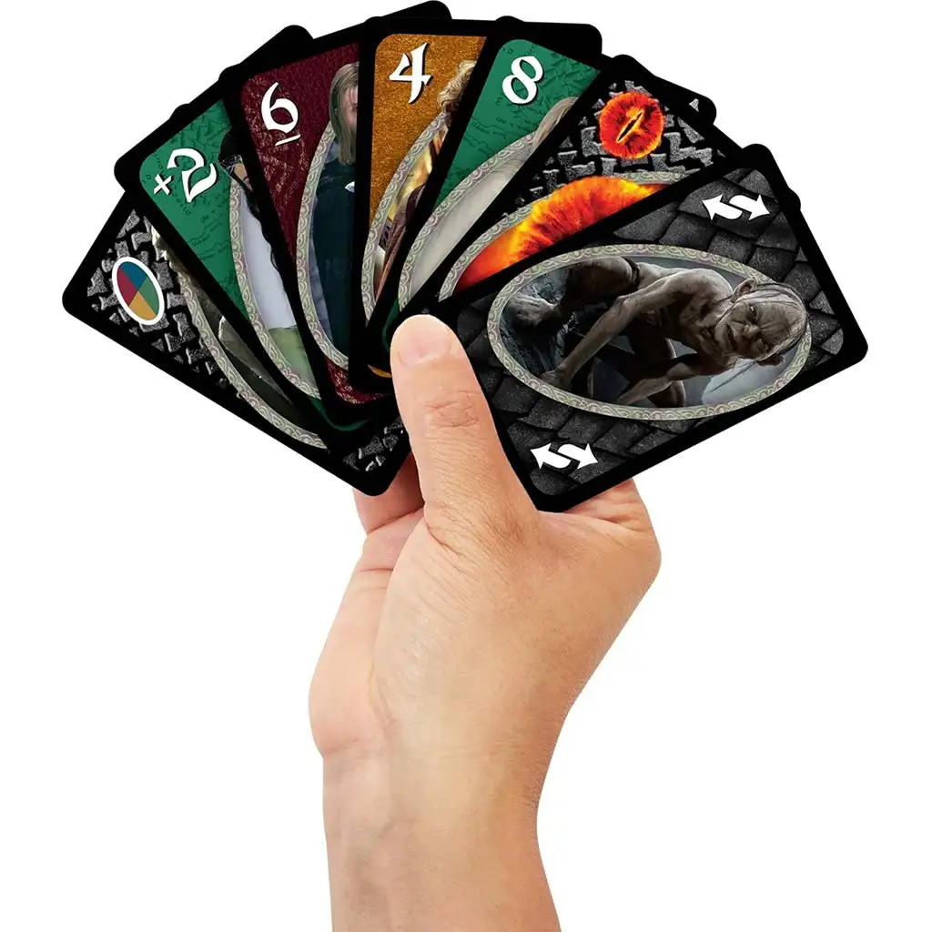 Potek igre je klasičen za UNO: cilj igralcev je čim hitreje odložiti vse svoje karte, tako da usklajujejo barve ali številke. Znane akcijske karte – kot so +2, sprememba smeri ali izpust poteze – prinašajo razburljive preobrate, ob zadnji karti pa seveda ne sme manjkati znameniti vzklik »UNO!«. Tema Gospodarja prstanov doda posebno vzdušje vsaki igri, ne glede na to, ali gre za družinsko igro ali druženje s prijatelji.