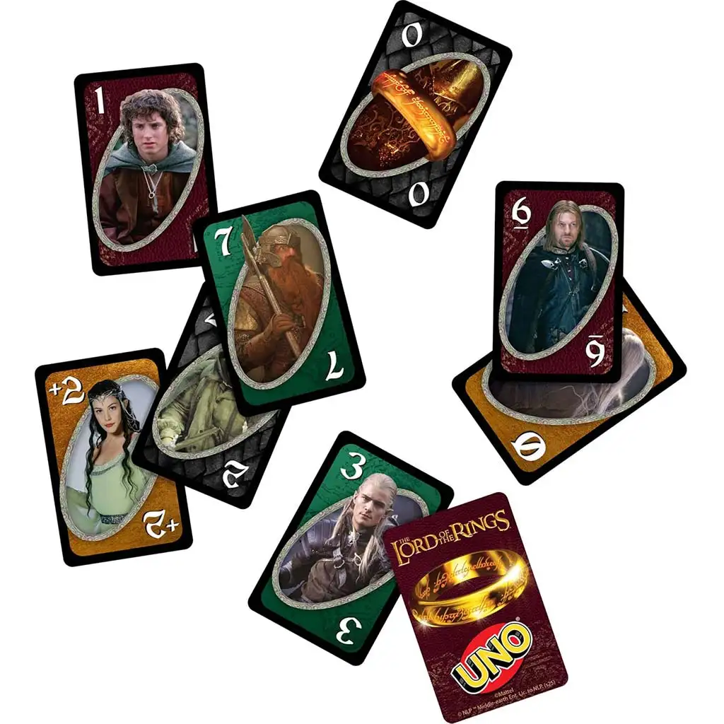 UNO – Gospodar prstanov kartaška igra združuje klasično, hitro in enostavno naučljivo igranje UNO z legendarnih svetom Gospodarja prstanov ter tako ponuja posebno doživetje tako ljubiteljem družabnih iger kot oboževalcem Tolkienovih zgodb. Ta izdaja prinaša ikonično vzdušje in like iz filmske sage na igralno mizo, obenem pa ohranja dobro poznana pravila in hitro dinamiko UNO.