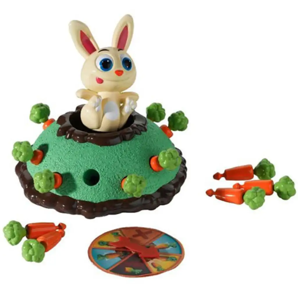 V družabni igri Skakajoči Bob je Bob, mali zajček, na svojem korenčkovem polju nabral veliko korenja. Vendar pa na okusno poslastico ne računa le on, ampak tudi igralci, zato je cilj igre, da igralci previdno izvlečejo korenje iz zemlje, upoštevajoč navodila vrtavke. Toda to ni tako preprosta naloga! Paziti je treba, da Bob ne prestraši, saj če se ustraši, bo skočil visoko v zrak! Kdor uspe ujeti zajčka v zraku, lahko ukrade 2 korenčka od svojih soigralcev. Zmagovalec igre je tisti, ki zbere največ zdravih korenčkov.