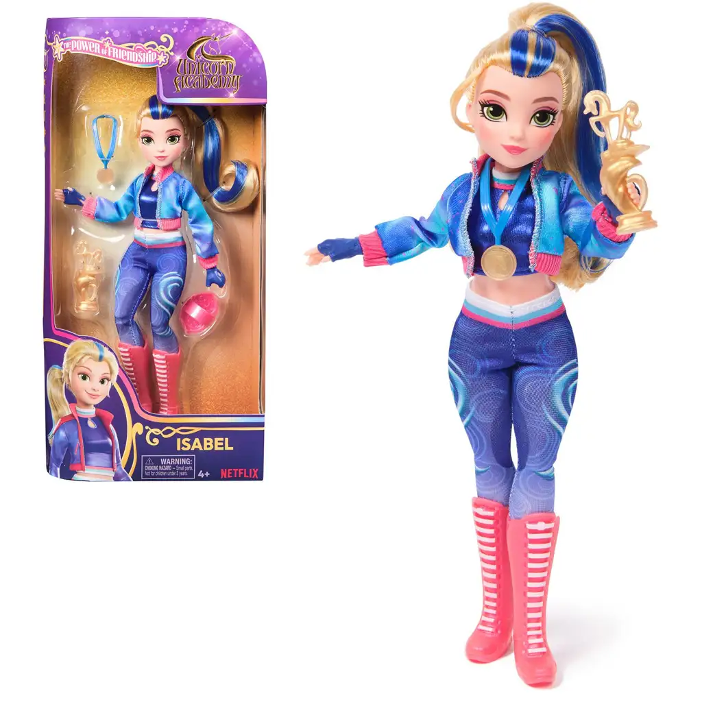 Potopi se v čarobni svet Unicorne akademije z Isabel! Ikoničen lik iz Netflixove serije zdaj oživi v tej podrobno izdelani, 24 cm visoki lutki, ki je popolna izbira za vse male oboževalce, ki radi podoživljajo svoje najljubše prizore ali si izmišljajo lastne zgodbe med stenami čarobne akademije. Isabel ni le pogumna in odločna junakinja, temveč je lahko tudi navdihujoč vzor otrokom, ki radi spremljajo njene pustolovščine.