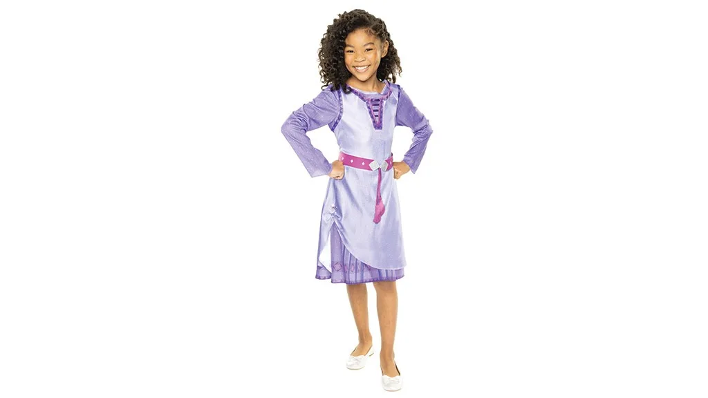 Otroci se lahko oblečejo točno tako kot Asha iz Disneyjevega glasbenega filma Želja, ki bo kmalu predstavljen. Ta dolgoročna obleka vsebuje podrobnosti iz filma in potiskano podlogo. Obleka je narejena za otroške velikosti 4-6X.