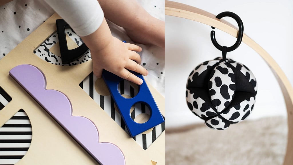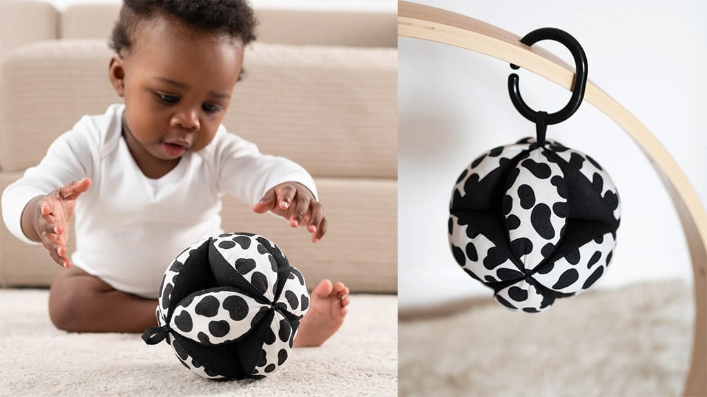 V zbirki je na voljo tudi senzorična žoga s pikčastim vzorcem (35 dolarjev). Ta mehka in prožna žoga raste skupaj z dojenčki, v vsakem razvojnem szakaszu ponuja novo igralno izkušnjo. Lahko se pritrdi tako na avtosedež kot na igralno podlogo, zato je vedno pri roki. Večji dojenčki lahko razvijajo svojo gibalno koordinacijo tako, da primejo, mečejo ali stresajo žogo z lahko oprijemljivo, segmentirano obliko. Družine lahko uživajo v igri tudi v sončnem vremenu na vodoodporni igralni podlogi, ki otrokom omogoča, da udobno in v stilu raziskujejo vizualne čudeže pomladi. Ta zbirka ne podpira le razvoja dojenčkov, temveč ustvarja tudi skupne, vesele trenutke za vso družino.Dojenčkove oči ob rojstvu še niso popolnoma razvite, zato je Etta Loves sodelovala z ortoptistom in Sussex Baby Labom, da bi razumeli, mit dojenčki radi opazujejo. Njihove raziskave so pokazale, da takšni monokromatski vzorci pomagajo pri zgodnjem prepoznavanju in spodbujajo nastanek povezav v dojenčkovih možganih. Ti senzorični vzorci poleg tega pritegnejo dojenčkovo pozornost, zato pomagajo pomiriti nemirne malčke in ustvarjajo trenutek miru za družino. Redna uporaba takšnih vzorcev lahko prispeva k senzoričnemu razvoju dojenčkov in pomaga staršem lažje ustvariti harmonično vzdušje v svojem domu.