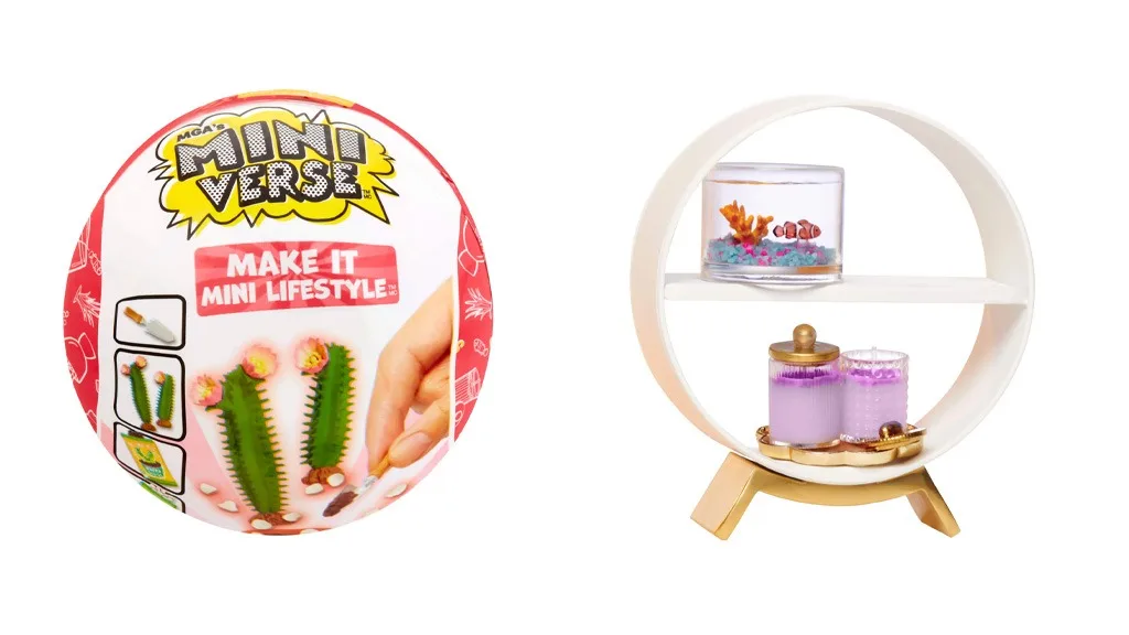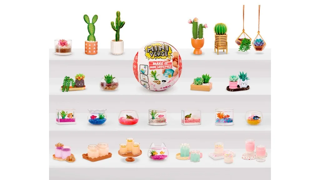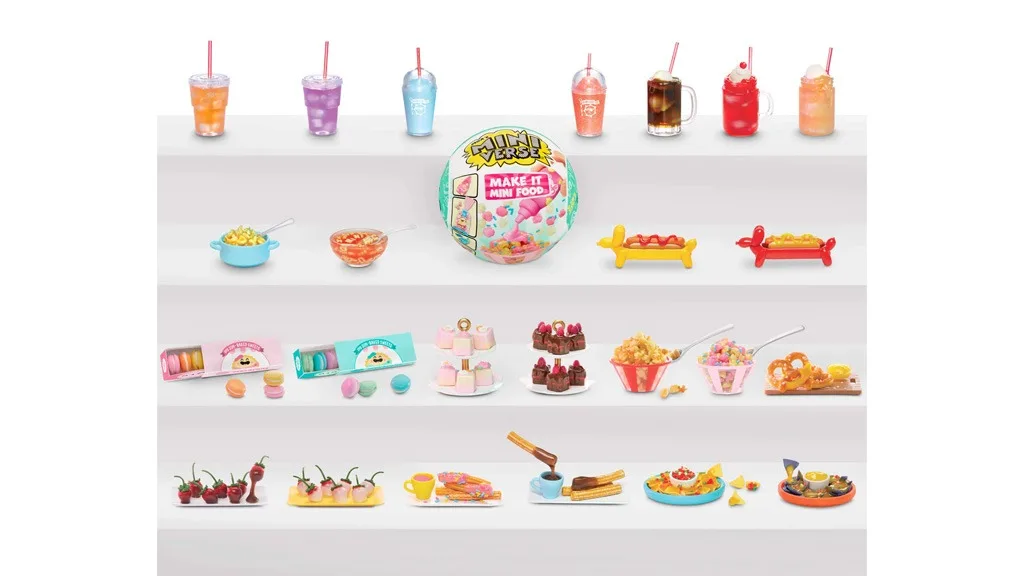 MGA Miniverse Make It Mini Lifestyle Series 1 Mini zbirka vključuje miniaturne sveče, rastline, ribnike, viseče terarije in še veliko več. Ko odpreš miniaturni ribnik, najdeš ljubke tematske podrobnosti, kot je na primer steklenica z napisom "Fresh H2O, Aqua Sun Co." iz smole in lažni časopisni papir za pakiranje (The Mini Post). Majhna riba prispe v prav tako majhnem paketu. Od pakiranja do končnega izdelka je ustvarjanje minijev celovito doživetje!V MGA Miniverse Make It Mini Food Cafe Series 2 Mini zbirki najdemo jedi, kot so pokovka, abecedna juha, smetanova plovnica, rumeni koruzni nachosi in še veliko več. Na voljo so tudi manjše pijače, kot so pomaranča in grozdna soda. Grozdna soda prihaja s prozornim kozarcem, slamico, vijolično grozdno sodo (smola) in vrečko ledenih kock. Navodila zahtevajo, da mini navdušenci napolnijo kozarec s sodo, dodajo led s kleščami, vstavijo pokrovček in slamico, nato pa pustijo, da se smola strdi. Lahko pa najprej dodajo malo smole, nato nekaj ledu in postopek ponovijo, ali pa pripravijo pijačo, ki je sestavljena predvsem iz ledu.