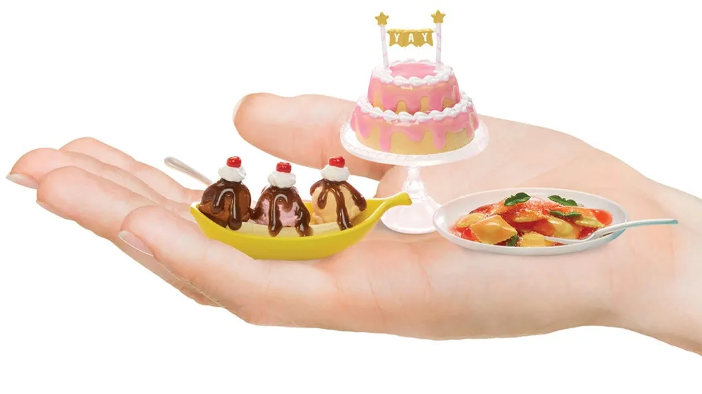 po Frankensteinovem stilu.Miniki prihajajo z majhnimi delci in smolo, zato so priporočljivi za otroke, stare 8 let in več, potrebno pa je tudi nadzorstvo odraslih; morda je dobro otroke na kratko opomniti, da čeprav izgleda okusno, to ni prava hrana. Poleg tega je izdelovanje miniaturnih jedi in predmetov za dom okoli mize popolna priložnost za družinsko povezovanje! Ali pa, če nimate otrok, je to odlična dejavnost, ki jo lahko počnete med klepetom s prijatelji.Otroci lahko odprejo presenečenje embalažo, da odkrijejo vse potrebne sestavine za ustvarjanje miniaturnega, hrane tematskega zbirateljskega kosa. Komplet vključuje tudi miniaturne kuhinjske dodatke in recept kartico.Pripravi in predstavi mini zbirke življenjskih slogov, ki segajo od mini akvarijev z majhnimi ribami do mini kaktusov in majhnih vrečk zemlje. Zbrati in ustvariti je mogoče več kot 100 materialov, paketov in dodatkov za življenjski slog.