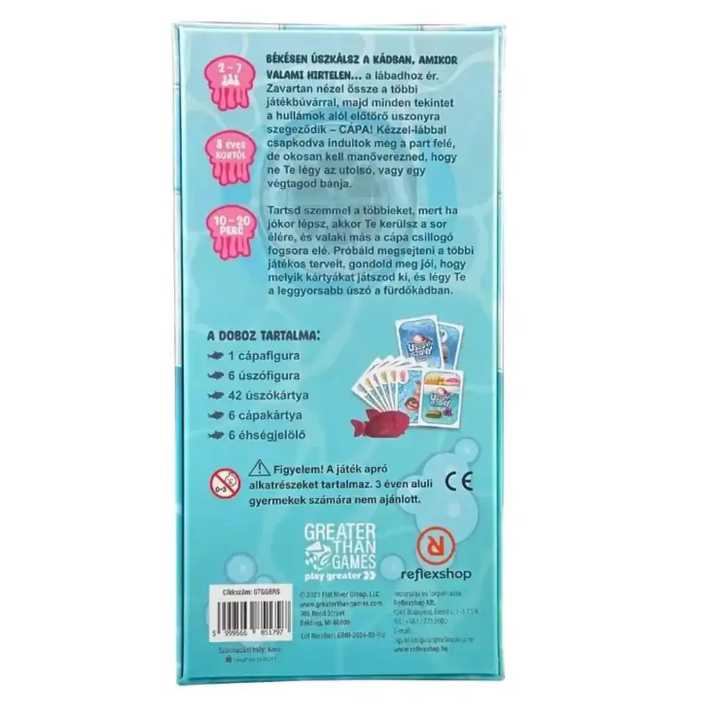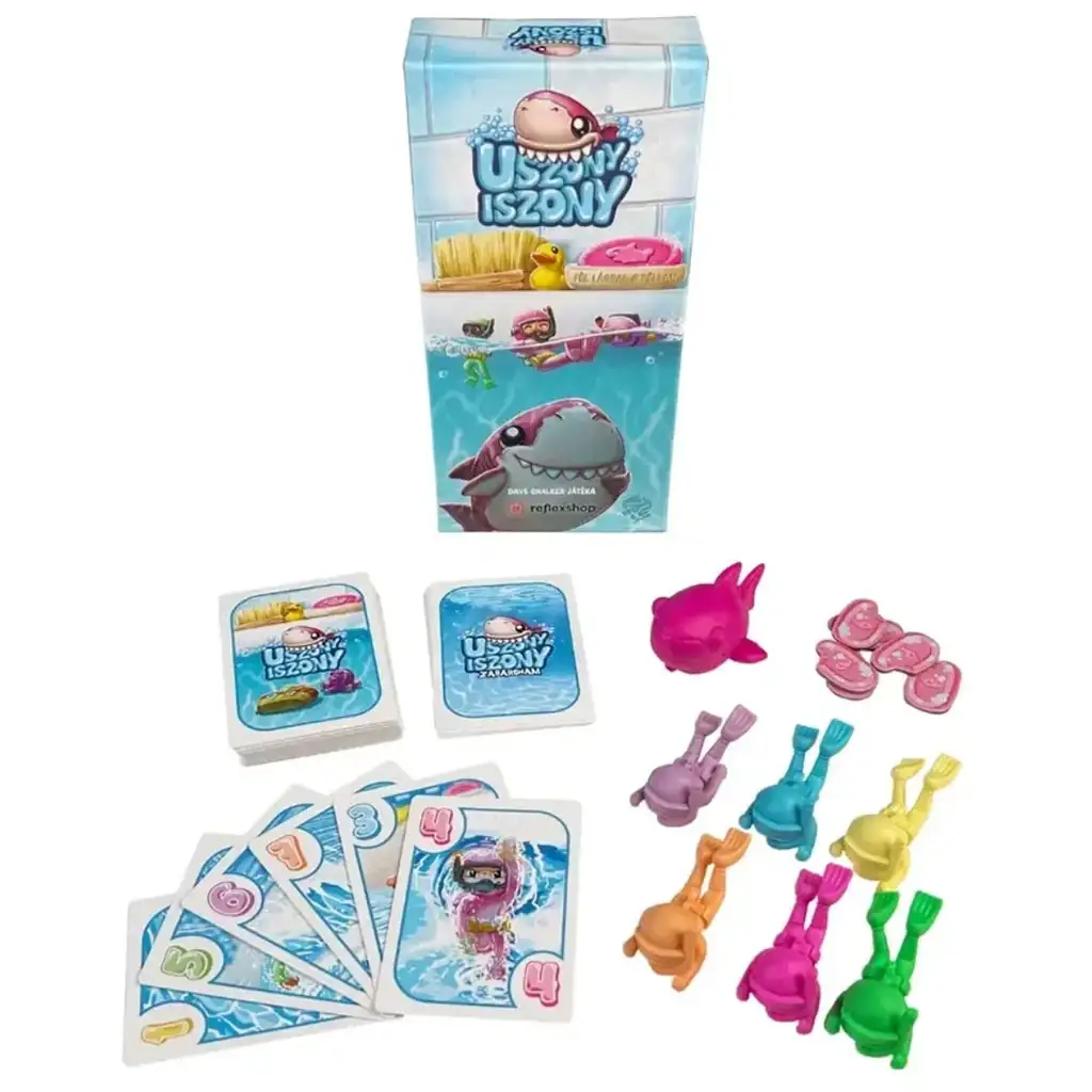 Uszonyiszony je enostavno učljiva, hitra zabavna igra, ki zagotavlja smeh vsem. Igra je namenjena 2–7 igralcem, ena igra pa traja le 10–20 minut, zato je idealna izbira za družinske večere ali srečanja s prijatelji. Izločanje igralcev in vznemirjenje tekmovanja nenehno ohranjata napetost, medtem ko zabavna tema in ljubke figure morskih psov poskrbijo za brezskrbno zabavo.