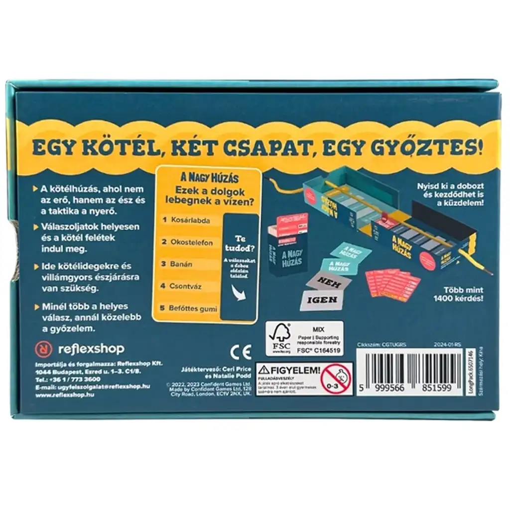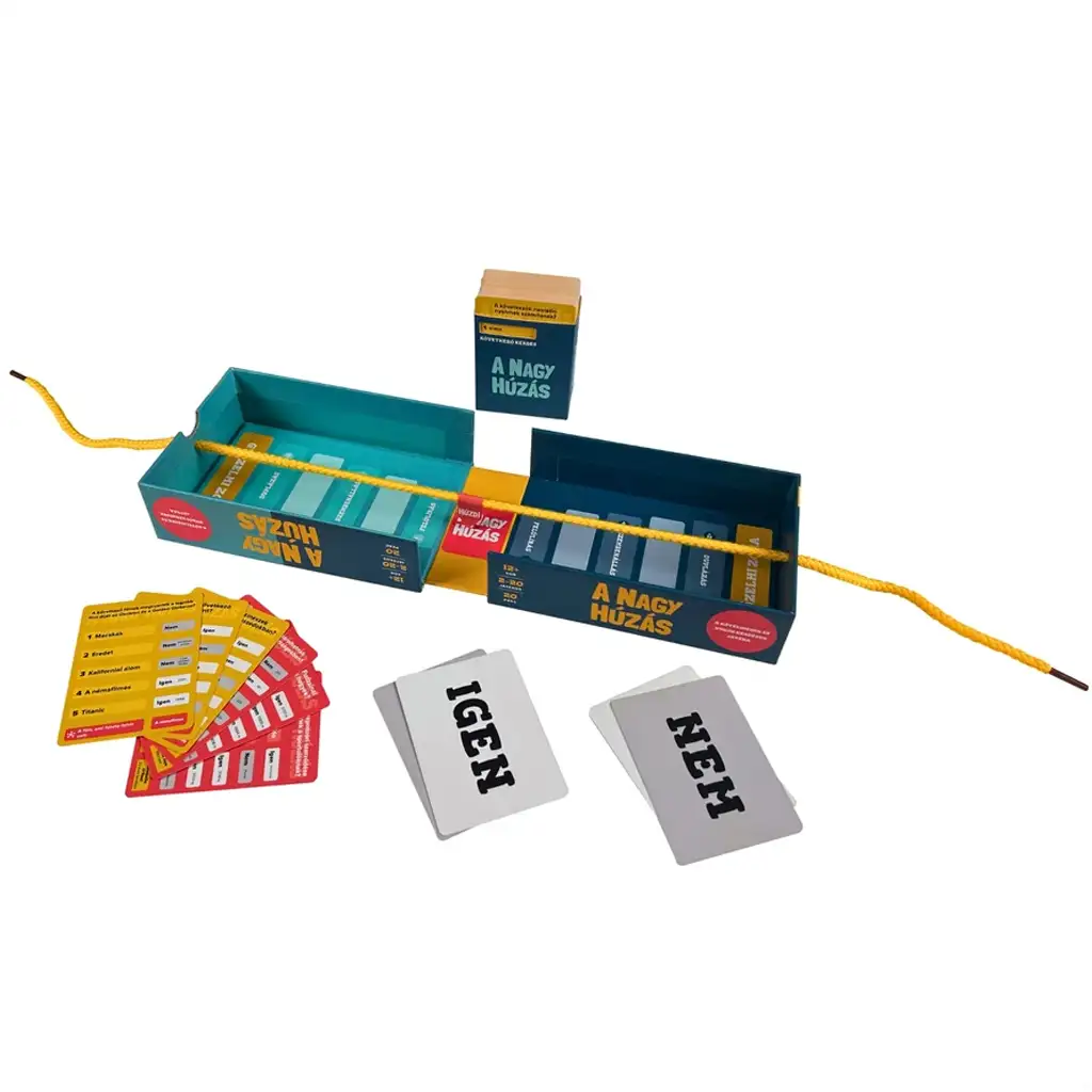 Veliki poteg je družabna igra, ki je vznemirljiva in hitra kviz igra, kjer ne odločata moč, temveč pamet in taktika, kdo bo zmagovalec! Ta posebna igra združuje klasično tekmovanje v vlečenju vrvi z močjo hitrega razmišljanja in pravilnih odgovorov.