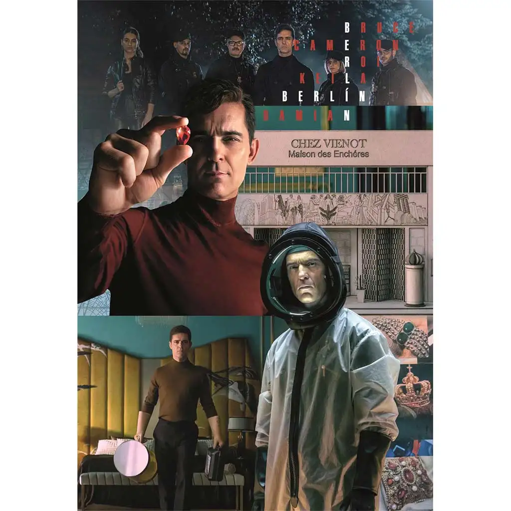- Prikazuje lika Berlina in razburljive prizore iz "La Casa de Papel".