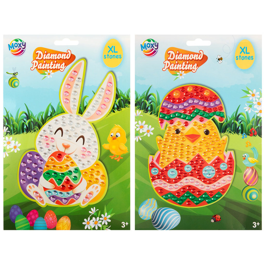 Če za svojega otroka iščete preprosto, a hkrati privlačno ustvarjalno dejavnost, je ta velikonočna sestavljanka z diamantki odlična izbira! Na podlago z veselimi motivi zajčka ali piščančka je mogoče enostavno namestiti velike barvite kamenčke, zato lahko že manjši otroci ustvarjajo z občutkom uspeha. Bleščeč končni izdelek bo zagotovo navdušil, hkrati pa se bo vaš otrok razvijal in zabavno preživljal čas. Idealen za velikonočno vzdušje ali kot darilo.