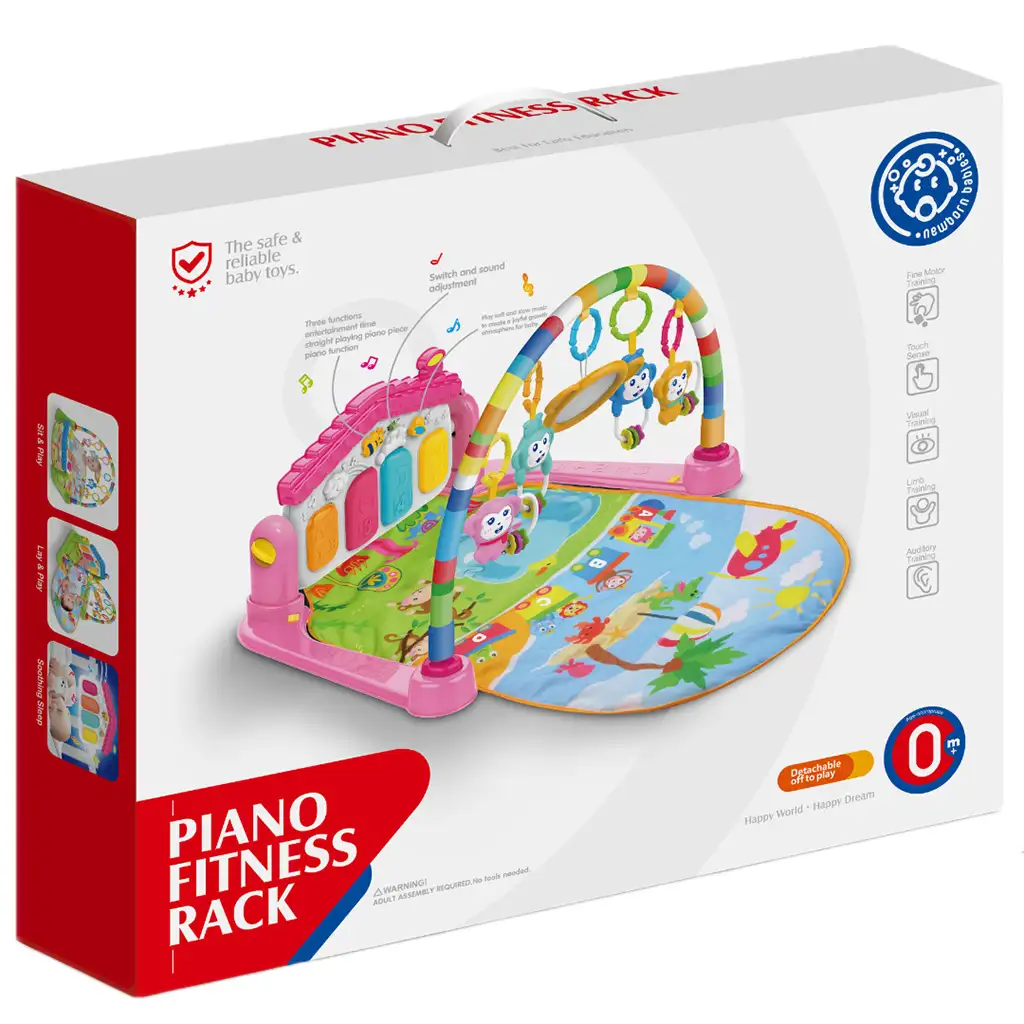 Ta preproga je polna veselih ropotuljic in visečih dojenčkovih igrač, s katerimi se lahko otrok zlahka potopi v igro in raziskovanje. Z pritiskom na štiri gumbe na dojenčkovi klavirski tipkovnici pa se sprožijo različne melodije in zvoki, s čimer se spodbuja malčka k raziskovanju glasbenih doživetij in razvoju občutka za ritem.
