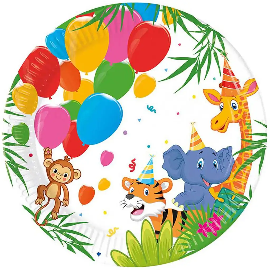 Veseli džungelski vzorec papirnatih krožnikov, set 8 kosov, 20 cmVeseli džungelski vzorec papirnatih krožnikov, set 8 kosov, 20 cm