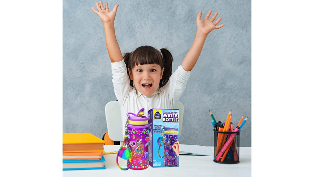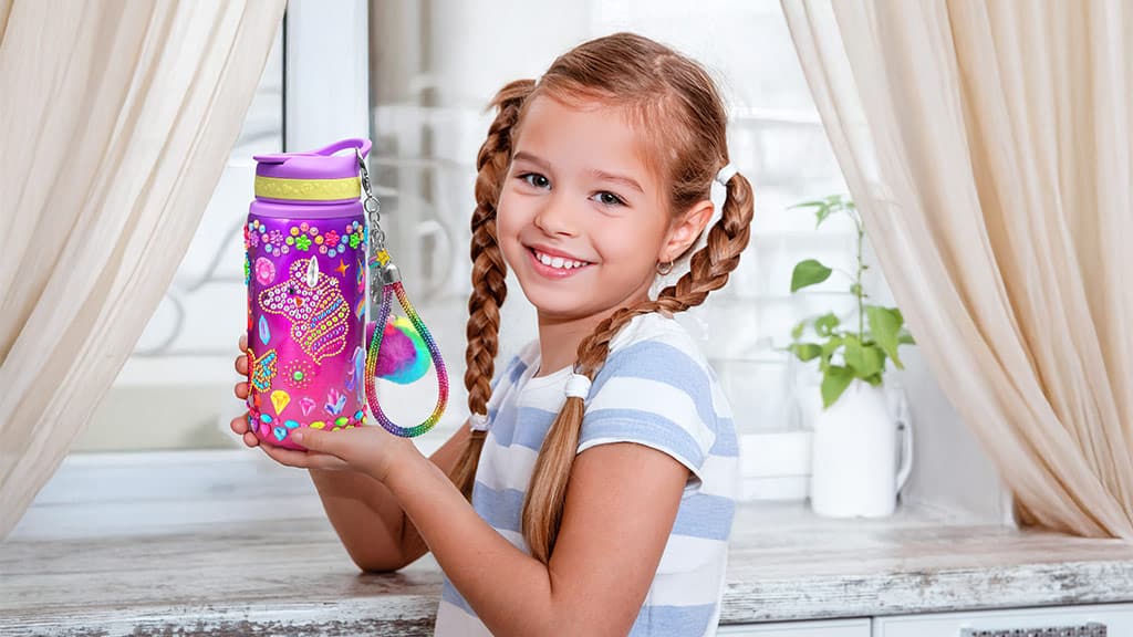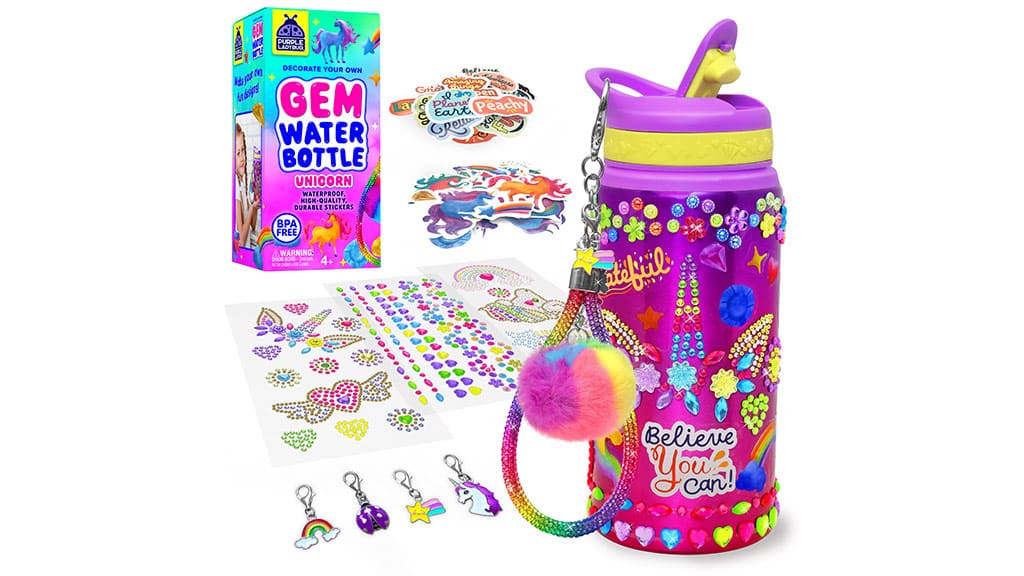 Ta ustvarjalni komplet je bil zasnovan posebej za otroke, stare 4 leta in več. Paket, ki ga je pripravila Lila katica, vsebuje vse, kar otroci potrebujejo za okrasitev svoje stekleničke. V kompletu je ena 20-unčna steklenička, tri lista nalepk z dragulji, dva lista vinilnih nalepk, pet medalj in ena bleščeča zapestnica. Ta komplet je v enorogovi tematiki, s pisanimi nalepkami, med katerimi so enorogi, mavrice, zvezde, srčki in še veliko drugih motivov. Kmalu bo na voljo tudi morska deklica različica, ki bo otrokom ponudila še več zanimivih možnosti. Ta komplet ne razvija le ustvarjalnosti, ampak zagotavlja tudi odlično zabavo, medtem ko si otroci izdelajo svojo edinstveno stekleničko v lastnem slogu.