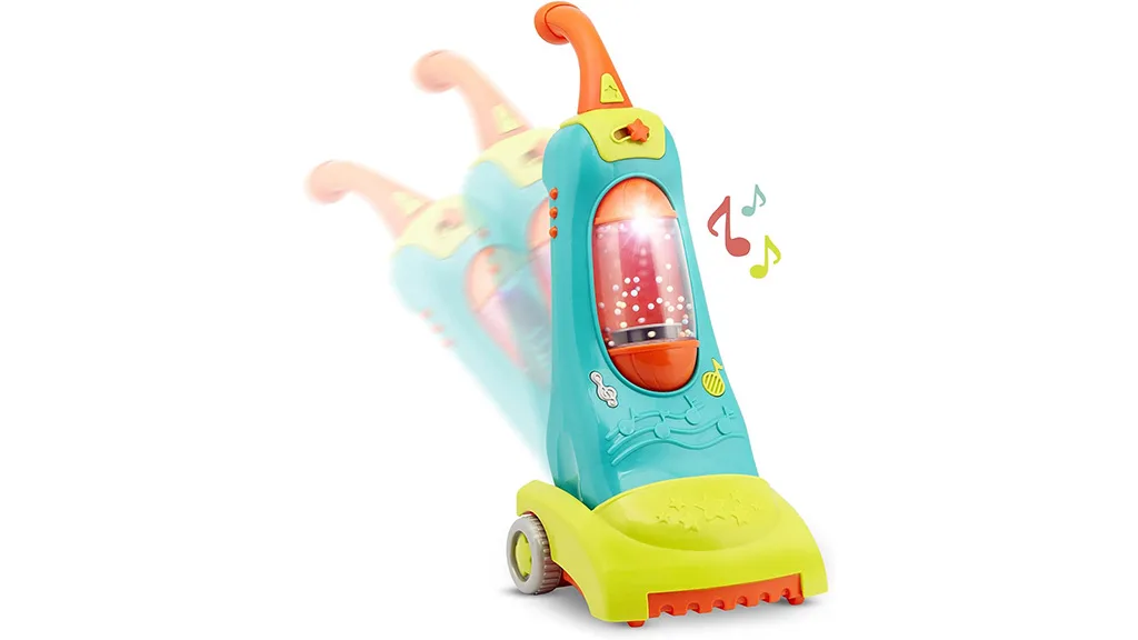Otroci se lahko igrajo z igračo sesalnikom, ki ima luči, zvoke in vrtljive kroglice. Igrača predvaja dve ušesom prijetni melodiji, da spodbudi otroke k zabavnemu spoznavanju čiščenja.