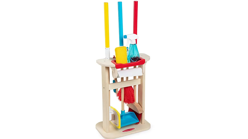 Otroci lahko pomagajo pri gospodinjskih opravilih z orodji in dodatki, prilagojenimi njihovi velikosti. Komplet 11 kosov vključuje vse potrebne čistilne pripomočke, kot so metla z lesenim ročajem, mop z zamenljivo čistilno krpo, prahomer in še več.
