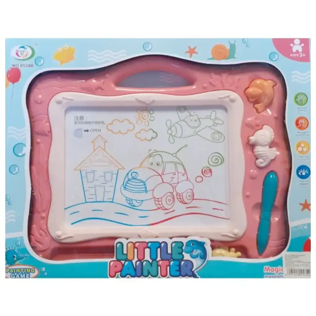 Ta magnetna risalna deska bo pravo osvežitev za majhne otroke, saj njen okvir in celotno temo zaznamuje osvežujoči svet voda. V okviru deske je prostor za pisalo, ki je posebej zasnovan za majhne roke, zato ga otroci lahko udobno tartajo. Risbo, ki jo otroci pripravijo na deski, je mogoče izbrisati z enim samim gibom s pomočjo drsnega gumba pod sliko. Svoje ustvarjanje lahko otroci dopolnijo tudi s štampiljkami z motivom delfina in morskega konjička. Navedena cena velja za eno barvno različico, izbrano barvo prosimo navedite v opombi ob oddaji naročila.
