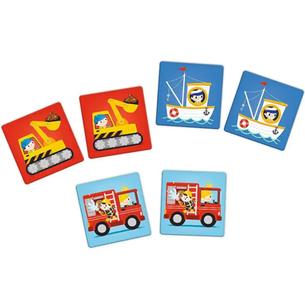 Ta igra je v vseh pogledih odlična izbira za dveletne otroke, saj se najprej spoznajo z različnimi vozili, nato lahko vadijo prepoznavanje parov, na koncu pa se lahko igrajo tudi kot igro spomina. Nič drugega ni treba storiti, kot temeljito premešati ploščice, obrnjene s sliko navzdol, ki so lepo razporejene na mizi. Nato začetni igralec obrne dve ploščici in vsi si zapomnijo, kaj je bilo na sliki, preden se ploščici obrnejo nazaj. Nato je na vrsti naslednji igralec. Če igralec uspešno najde par slik, ga dobi in lahko poskusi znova. Zmagovalec bo tisti, ki bo na koncu imel največ parov slik v svoji zbirki.