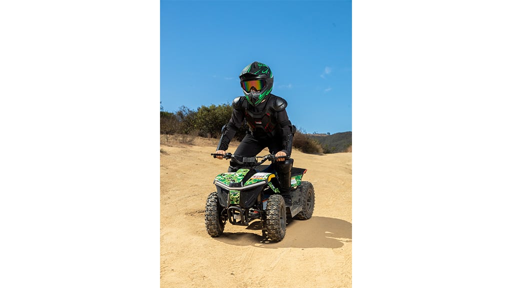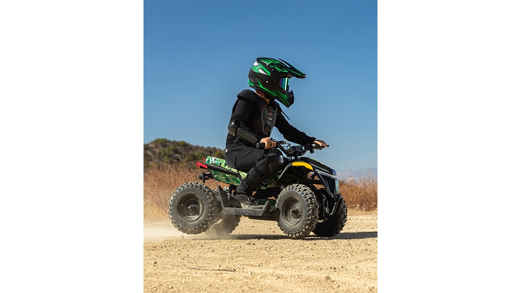 Ta električni mladinski ATV omogoča otrokom, da sodelujejo v terenski zabavi. Ima dvojni sistem vzmetenja za gladko vožnjo, 36V litij-ionsko baterijo, pogon na dve kolesi in dvojno ročno zavoro. Fury je opremljen s starševskim nadzorom in lahko deluje s hitrostjo 10-15 mph. To vozilo ni le zabavno, ampak tudi varno, saj starši zlahka nadzorujejo hitrost in uporabo, tako da lahko otroci varno uživajo v pustolovščinah. Oblikovanje ATV-ja je moderno in privlačno, tako da ga otroci ponosno pokažejo svojim prijateljem. Zaradi trpežnih materialov je dolgotrajen in odporen na različne terenske pogoje.