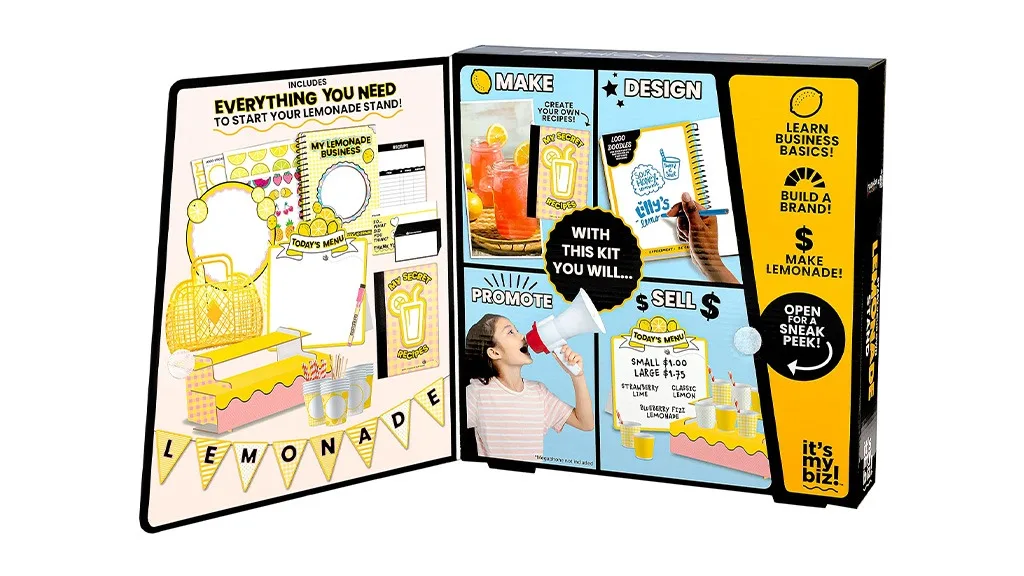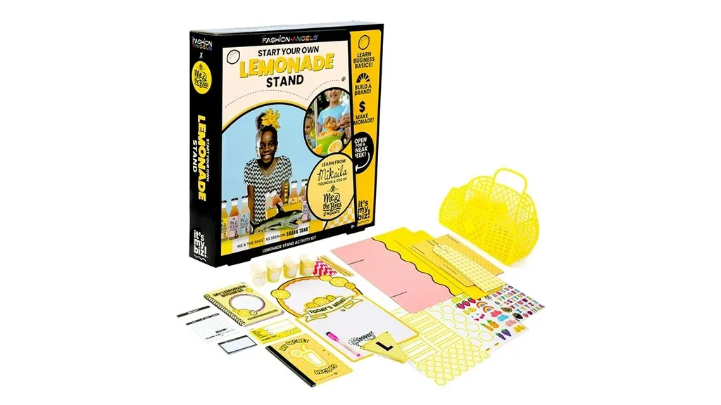 Fashion Angels ponuja številne ustvarjalne dejavnosti za otroke, prodajajo pa tudi komplete, ki vsebujejo vsa potrebna orodja, da lahko otroci začnejo svoja mala podjetja. Novi komplet It’s My Biz! Limonadni kiosk so ustvarili skupaj z podjetjem Me & the Bees, ki dobro pozna mlade podjetnike. Me & the Bees je ustanovila Mikaila Ulmer, ko je bila stara komaj 4 leta, in zdaj lahko otroci po vsem svetu sledijo njenim stopinjam.