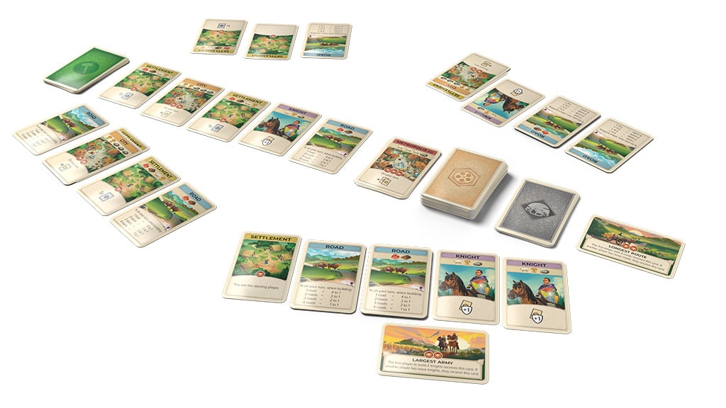 Cilj te Igre s kartami je enak kot pri izvirni različici: zbiraj vire, gradi ceste in mesta ter trguj z drugimi naseljenci, da prevzameš nadzor nad otokom. Namesto fizičnih igralnih elementov pa igralci zdaj vlečejo karte iz skupnega kompleta in tako pridobivajo potrebne predmete. Ta rešitev naredi igro hitrejšo in lažje prenosljivo, hkrati pa ohranja izvirno strateško globino in napetost. Igra je idealna izbira za družine in prijateljske skupine, ki imajo radi izzive in skupne izkušnje. Izvirna igra, Catan, je izjemno priljubljena po vsem svetu, ta kartična različica pa ponuja odlično zabavo za vse starosti.