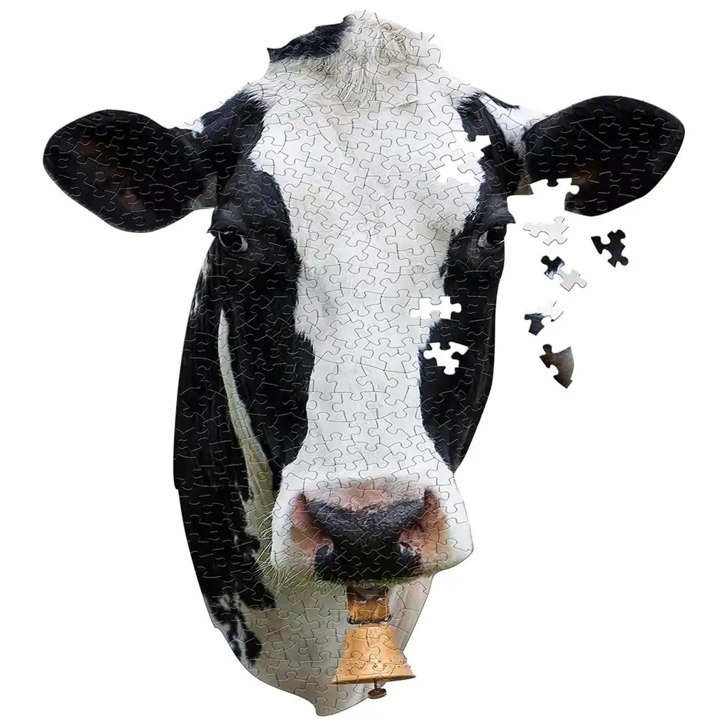 - Puzzle v obliki kravje glave z realistično grafiko