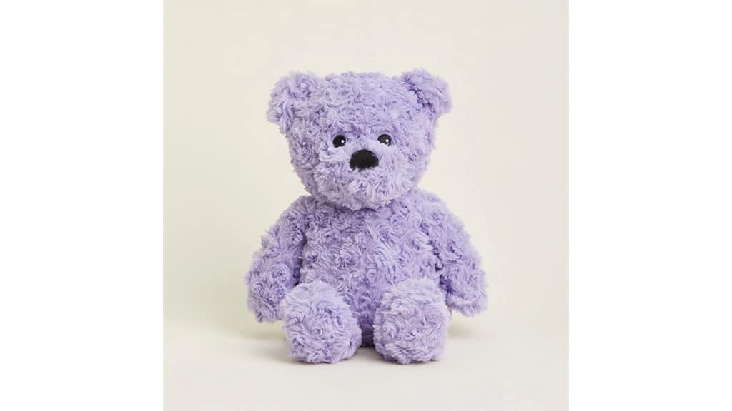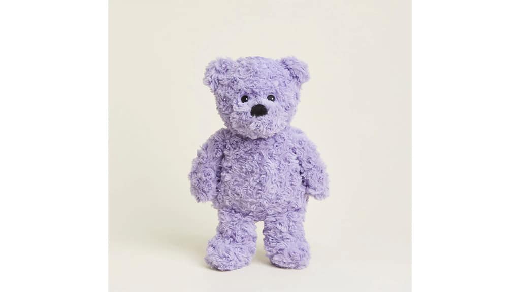 Ta plišasti medvedek je poseben zaradi več dejavnikov, vključno s prijetnim vonjem posušene sivke, ki poleg teže medvedka zagotavlja dodatno udobje. Purple Curly Bear Warmies ima telo, težko 2 funta, napolnjeno z naravnimi žiti, ne pa s plastiko ali riževimi zrni, in presega standarde CPSC z otrokom varno zasnovo. Ta medvedek lahko sedi pokonci, se manj nagiba in pogumno prenaša številne objeme, ki so odporni na obrabo. Warmies se lahko uporablja kot grelna ali hladilna blazina in je dovolj majhen, da ga vzamete s seboj na potovanja. Popoln spalni prijatelj za otroke, ki potrebujejo dodatno udobje za večerno umirjanje, kar zagotavlja boljšo kakovost spanja.