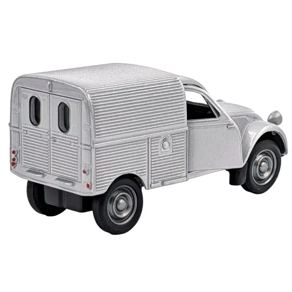Welly: Citroen 2CV siva kovinska modelčka avtomobila v merilu 1/64 je resnično nostalgičen kos, ki te popelje nazaj v stare čase Francije. Ta slavna dostavna »raca« zdaj oživi v pomanjšani različici in lahko razveseli tako igrive otroke kot tudi ljubitelje retro avtomobilov.