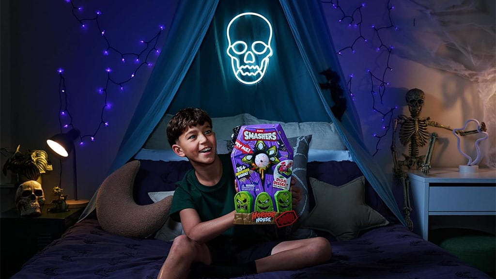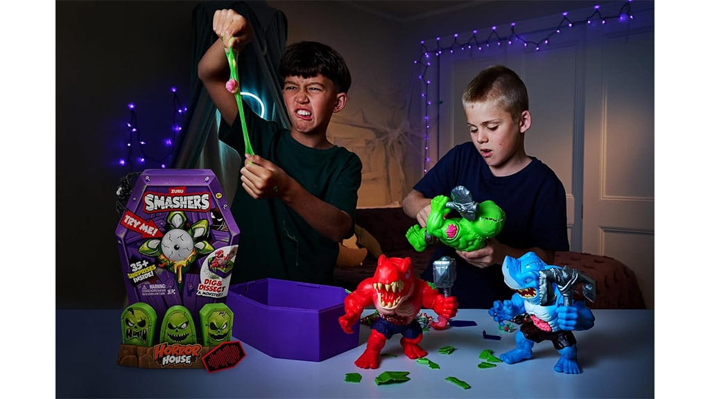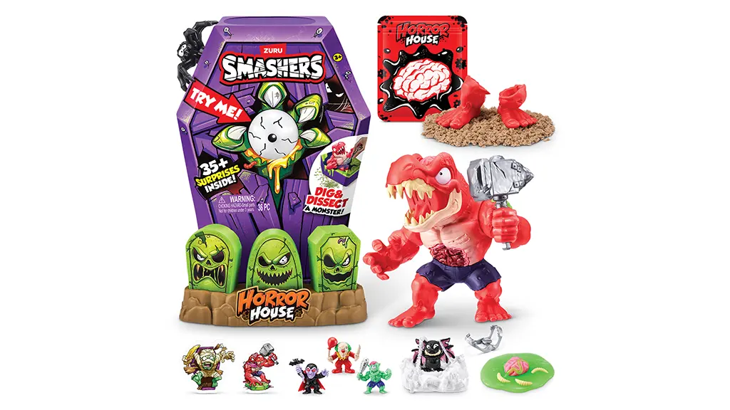 Zasnovano za otroke, od 3. leta starosti, je Smashers Mega Horror House od ZURU izkušnja odpiranja, ki dosega strašljive razsežnosti. Otroci odpirajo presenečenja, preiskujejo sluz in pesek ter odpirajo krste, da odkrijejo več kot 35 presenečenj, vključno z mini figuricami, nalepkami in še več. Največja nagrada v paketu je Smasher Pošast! Zbrati je mogoče tri Smasher Pošasti: Zombie Rex, Blood Shark in Brain Dead. Ko otroci sestavijo vse dele Smasher Pošasti, morajo vstaviti pošastni možgani in se poglobiti v notranjost, da najdejo zadnje presenečenje, ki jih čaka.