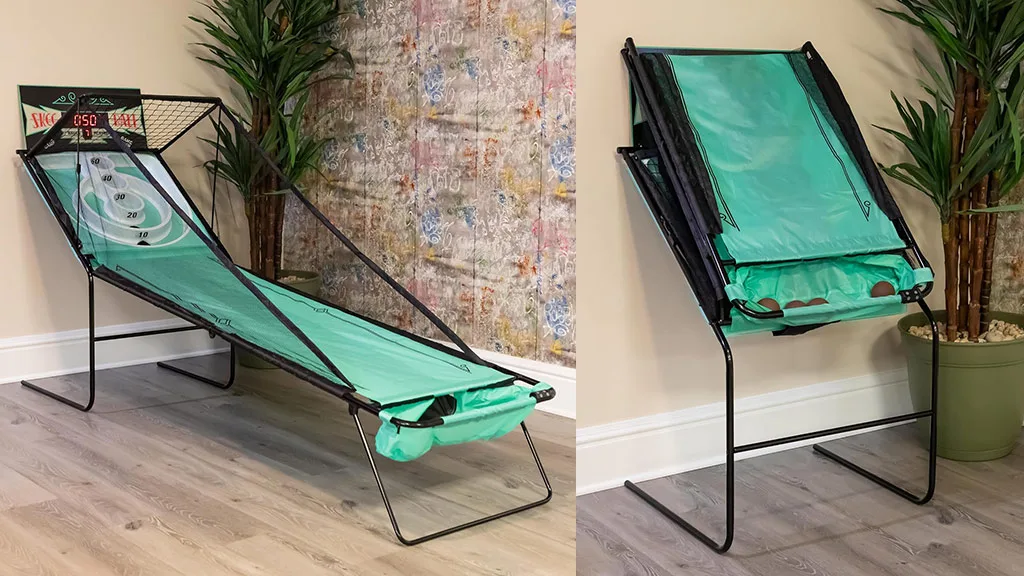 Našo letno ulično zabavo smo imeli prejšnjo jesen in dve največji uspešnici sta bili igri EastPoint Sports: Giant Connect 4 in Skee-Ball Frame Game! Otroci iz soseske, mnogi od njih še nikoli niso igrali Skee-Ball, so takoj postali navdušeni in čakali v vrsti, da bi poskusili. Bila je tako priljubljena atrakcija, da so me sosednji starši prosili, naj jo prinesem nazaj na našo zabavo za noč čarovnic (in sem jo tudi prinesel!).Z rastjočo priljubljenostjo domačih arkadnih naprav in igralnic je ta Skee-Ball Frame Game odlična izbira, ki se zloži in nasloni na steno za shranjevanje ob domačih arkadnih omaricah. Ko si pripravljen na igro, preprosto razgrni tunel in pripravi se na kotaljenje!