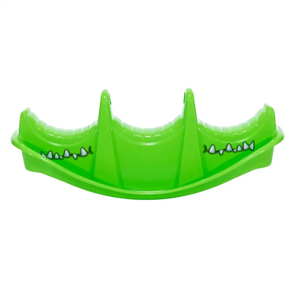 Ta vesela, krokodilasto oblikovana zelena gugalnica bo zagotovo postala najljubša med otroki! Zabavna zasnova ne le prinaša nasmeh na obraze, temveč ponuja tudi odlično priložnost za igro. Gugalnica s tremi sedeži omogoča, da se na njej hkrati gugajo trije otroci, kar jim omogoča skupno uživanje v igri. Je enostavna za premikanje in stabilna, zato je idealna izbira za uporabo na dvorišču ali v notranjih prostorih. Izdelana je iz trpežne plastike, kar zagotavlja varno uporabo na dolgi rok. Med igro otroci razvijajo svoje ravnotežje in koordinacijo gibanja, hkrati pa se odlično zabavajo. Ta gugalnica je popolna izbira, če iščete varno, a hkrati vznemirljivo igračo za otroke!