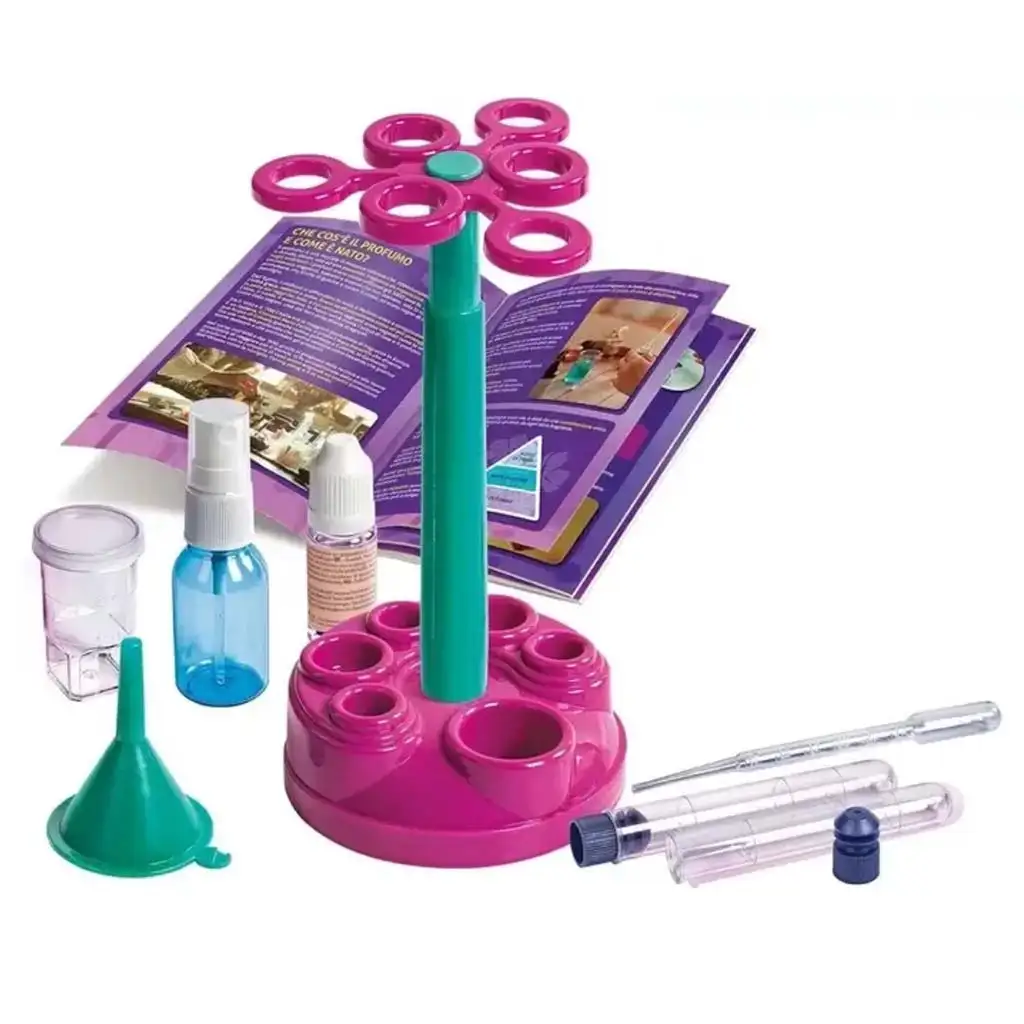 Mali komplet za izdelavo parfumov je vznemirljiva in ustvarjalna znanstvena igra, ki otrokom omogoča, da ustvarijo lastne dišave in parfume – prav tako kot pravi parfumerji! Komplet, ki ga je razvila Clementoni, ni le igra, temveč pravi mini laboratorij, kjer otroci spoznavajo svet dišav in osnove kemičnega mešanja. Komplet vsebuje vse potrebne pripomočke: merilni kozarec, pipeto, lijak, epruvete, stojalo in razpršilno stekleničko ter dišečo kozmetično osnovo, ki je popolna za prvo izdelavo parfuma.