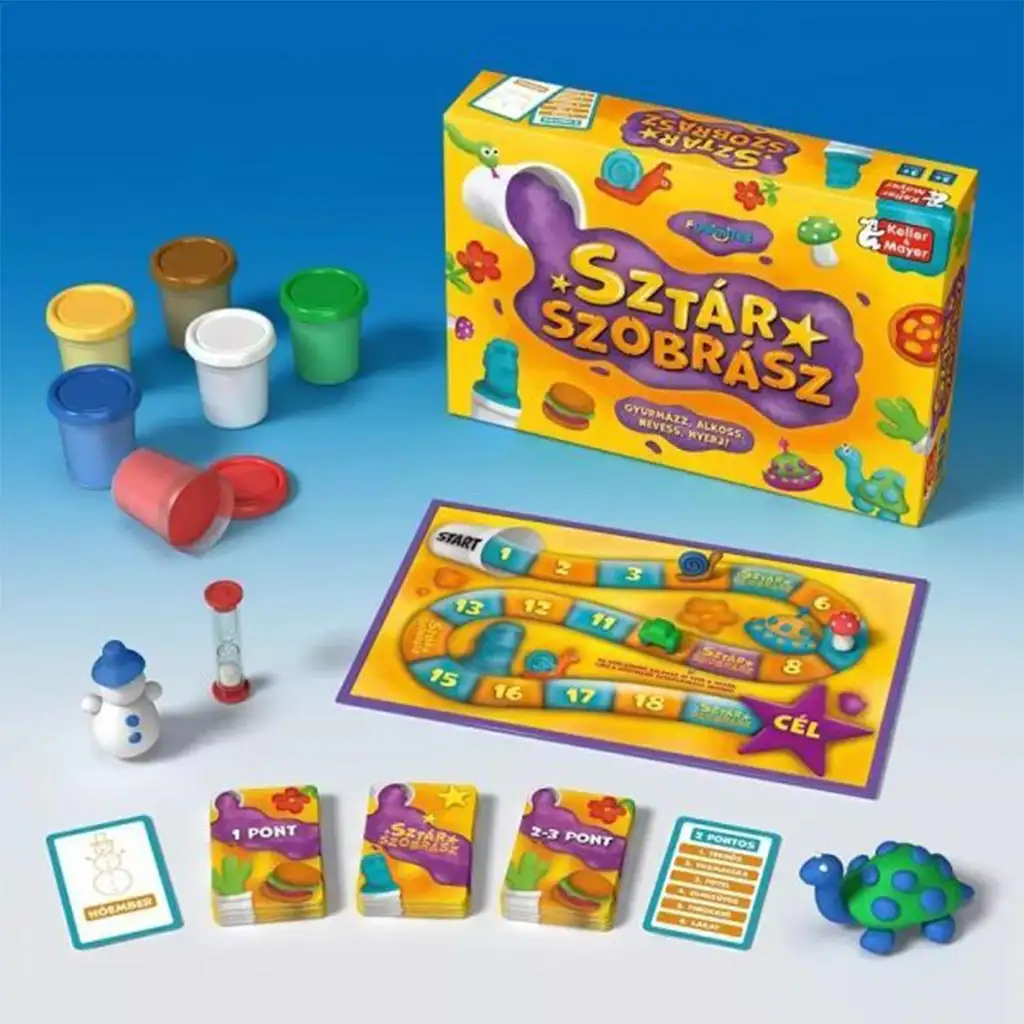 V družabni igri Zvezdni kipar lahko sodeluje cela družina v resnično ustvarjalnem in zabavnem izzivu z glino! Med igro morate iz gline oblikovati različne predmete, osebe ali živali, ki jih izvlečete na podlagi kartic. Možno je igrati v ekipah ali pa se preizkusiti individualno, medtem ko tekmujete tudi s časom. Popolna je tudi za najmlajše, saj so naloge razumljive brez branja, za starejše in odrasle pa čakajo resnejši izzivi. Igra očara s pomočjo barvnih glin in zagotavlja veliko smeha in ustvarjalnih trenutkov. Raznolikost nalog na karticah zagotavlja, da se vedno soočate z novimi izzivi, zato nikoli ne bo dolgočasno. Ne glede na to, ali iščete igro za nepozabno zabavo ali želite popestriti družinsko popoldne, bo Zvezdni kipar zagotovo odlična izbira.