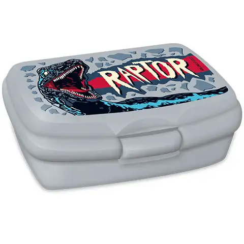 Ta drzna, siva torbica za malico bo zagotovo eden od najljubših šolskih pripomočkov malih fantov, saj ji motiv daje eden najbolj priljubljenih plenilcev iz filmov Jurski park in Jurski svet, Velociraptor. Čeprav torbica za malico nima učinek na okus sendviča v njej, je zelo domiselna rešitev, saj knjige hrane ne bodo zmečkale in tako bo ostala okusnejša, hkrati pa se torbica praktično zapira in tako ni potrebno iz nahrbtnika pobirat drobtinice.