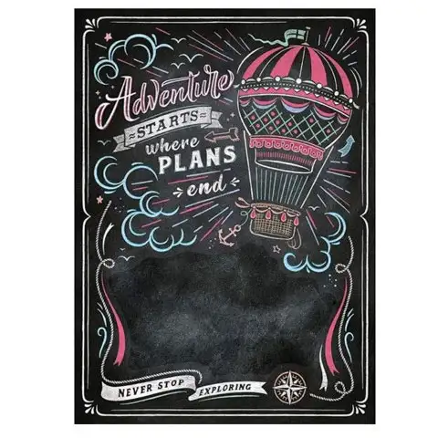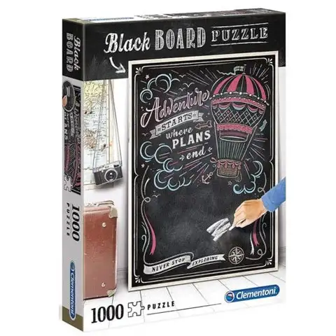 Črne table vzbujajo zelo retro učinek in ker se jih ponavadi lahko vedno znova in znova uporablja, jih mnogi uporabljajo v kavarnah, barih in tudi restavracijah. Sedaj smo prinesli s potovanjem povezano črno tablo, z izredno lepim videzom, z motivom toplozračnega balona in napisi. Sliko si lahko sedaj vaš otrok lasti v obliki 1000-delne sestavljanke, kateri se bo sigurno veselil, zahvaljujoč površini lahko namreč na njo s kredo tudi piše. Sestavljanje sestavljanke zahteva veliko pozornosti, vendar se zagotovo splača, končni rezultat bo namreč čudovito lep.
