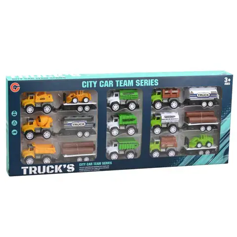 Vaš otrok ima rad različna vozila? Ta set je lahko odlična izbira zanj, sestoji se namreč iz delovnih strojev in kmetijskih vozil, od katerih je vse skupaj v setu 9, pri šestih vozilih pa je poleg tudi prikolica. Vozila so prejela detajlno zasnovo, kot tudi kotaleča se kolesa, s katerimi se lahko tako kjerkoli igra in jih vgradi tudi med svoje že obstoječe igrače. Priskrbite jih in že se lahko začne igra, k kateri boste v naši ponudbi našli tudi druge izdelke.