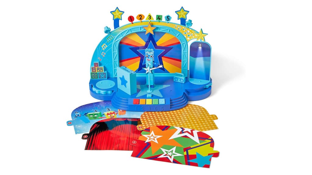 Numberblock Five glasbena superzvezda oder je najnovejši del v vesolju Numberblock! Ta komplet je zabaven, glasbeno ustvarjalen, 22-delni oder, ki vključuje osnovne matematične elemente. Otroci se lahko pridružijo akcijski figuri Numberblock Five na odru, kjer lahko postanejo rock zvezde in se hkrati seznanijo z nekaterimi preprostimi matematičnimi pojmi. Ta igra ne le razvija ustvarjalnost in glasbene veščine, temveč tudi spodbuja matematično razmišljanje, kar učenje spremeni v zabavno izkušnjo. Različni elementi odra omogočajo otrokom, da ustvarijo lastne glasbene nastope, medtem ko raziskujejo svet številk. Numberblock Five glasbena superzvezda oder je popolna izbira za vsakega malčka, ki želi izvedeti nekaj več o glasbi in matematiki.