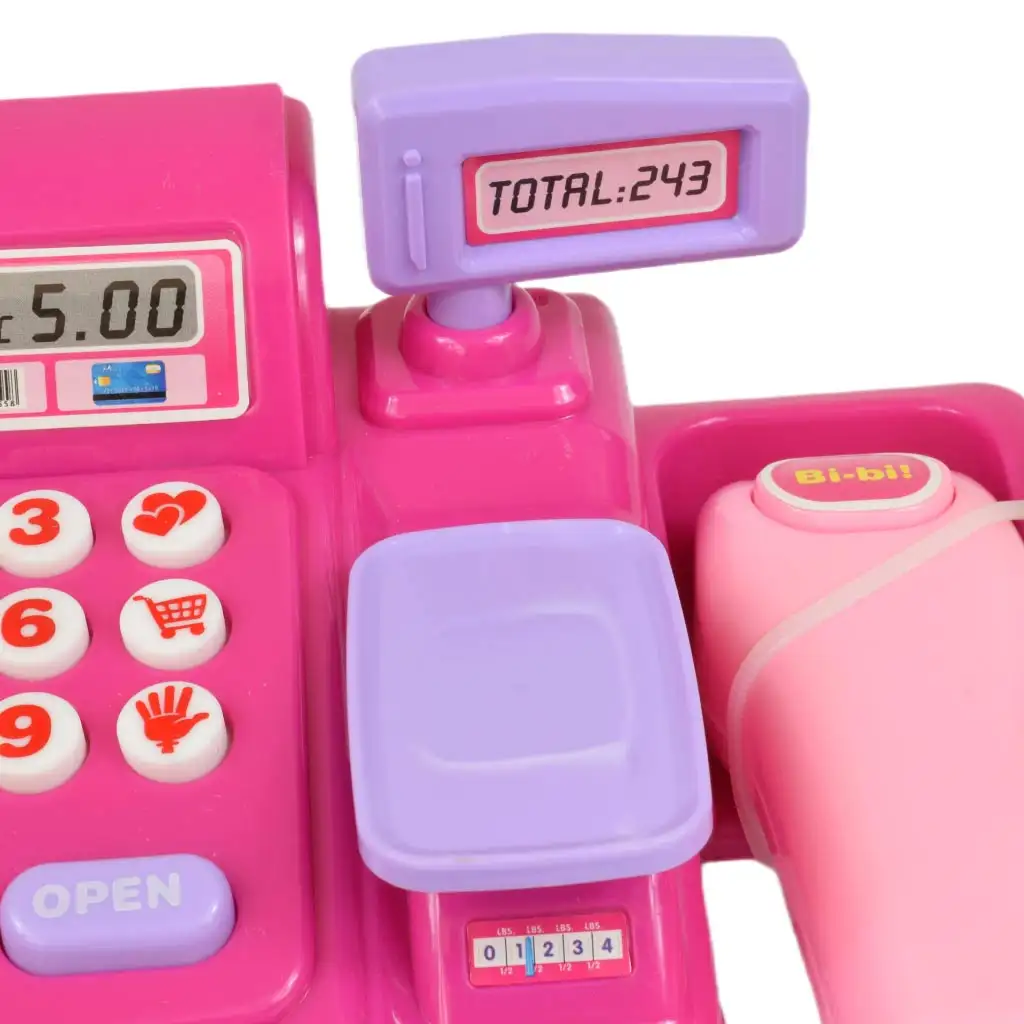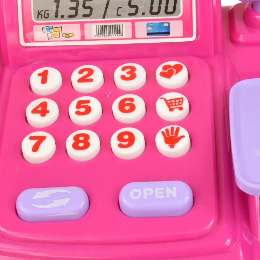 Ta elektronska blagajna ima vse funkcije, ki jih lahko najdemo v resničnem življenju. Gumbi omogočajo enostavno seštevanje cen, kar prispeva k igralni izkušnji. Tehtnica in ročni skener dajeta otrokom možnost, da naredijo igro čim bolj realistično in z izdelki ravnajo na realističen način.