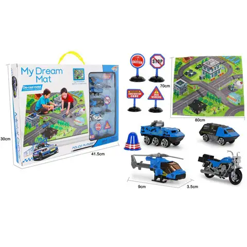 Posebna policijska vozila so od vsakodnevnih avtomobilčkov veliko bolj zanimiva, v tem paketu pa se nahajajo najbolj spektakularna, od oklepljenih transportnih vozil do helikopterja. Ta izjemni paket vsebuje vse potrebno za zares posebno igro, v njem se namreč nahaja igralna preproga s podobo mestnega dela mer 70x80 centimetrov, ceste in hiše pa se lahko dopolnijo tudi z majhnimi prometnimi tablami, s 4 policijskimi vozili pa se lahko že zaigra mestni promet.