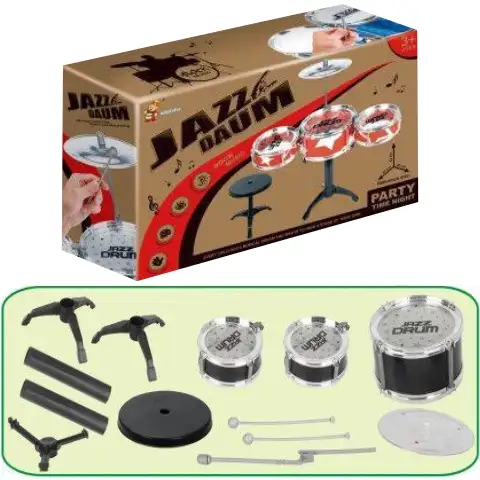Ta 4-delni bobnarski set je lahko odličen začetni set za otroke in paket za še bolj realistično igranje vsebuje tudi bobnarski stol. S fantastičnimi kompleti bobnov Magic Toys lahko otroci že zgodaj spoznajo čarobni svet tolkalnih instrumentov in raziščejo njihovo glasbeno žilico. Robustna oblika in lep, resničen videz kompleta bobnov bosta igro naredila še bolj zabavno, različni deli bobna pa bodo v igri zagotovili razburljiv in raznolik zvok. Komplet bobnov je pakiran v škatli in ga lahko enostavno in hitro sestavite s pomočjo delov, tako da lahko začnete z glasbo.