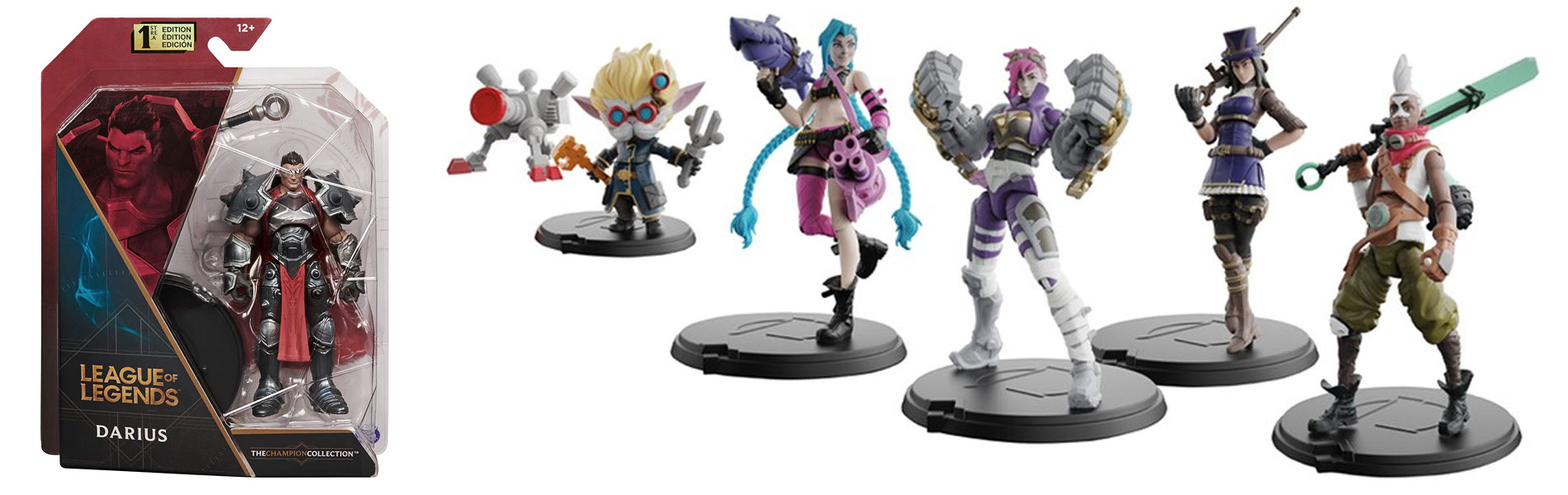 Jeseni 2021 bodo Darius, Yasuo in Jinx debitirali med figuricami, ki bodo na voljo v samostojnih paketih po 10 centimetrov, vendar bo na voljo tudi 5-delni paket v tej velikosti, kar pomeni paket po pet oseb junakov, kot so Ekko, Caitlyn, Heimerdinger, Vi in ekskluzivna različica Jinxa. Seveda bodo zbirateljske figurice postavljene tudi na police trgovin, narejene iz vrhunskega materiala s svojo 15-centimetrsko velikostjo, podrobno izdelavo in barvanjem. Premikate jih lahko v več kot 18 točkah ter so opremljeni z različnimi dodatki in tematskimi podplati. Najprej lahko oboževalci spoznajo priljubljeni figurici Thresh in Zed.