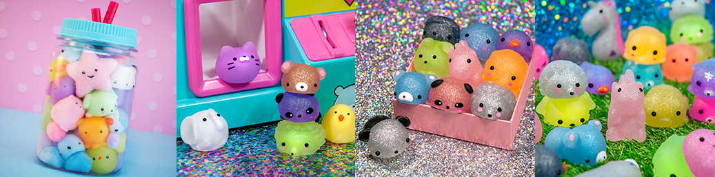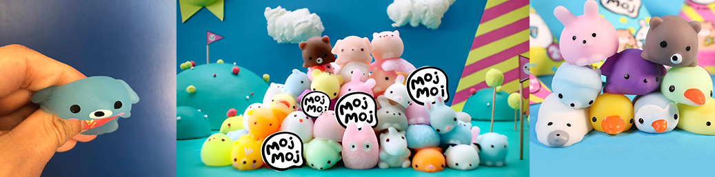 Začnimo pa na začetku. Figurice Moj Moj lahko zbiramo, izdelane so iz raztegljiva, prožnega, vendar močnega materiala, na otip so mehke in gladke in tako jih ne boste niti spustili iz rok. Figurice so na voljo v številnih barvah in oblikah, naj se gre za katerokoli žival, kot na primer zajčka, pando, muco, kužka ali morsko zvezdo. Te živali se nahajajo v majhnih paketih presenečenja in so na voljo v več kot 100 različicah. Posamezna žival je na voljo v več barvah in tudi z bleščicami, kar velja za zelo redko in boste tako izredno srečni, če naletite na tako v posameznem paketu.