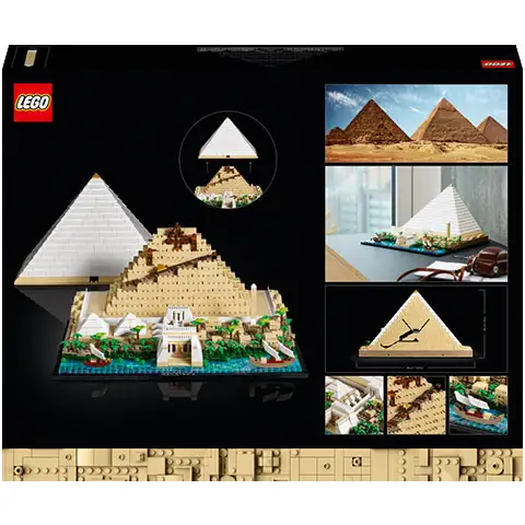 • Vodnik po korakih – komplet vključuje knjižico z ilustriranim vodnikom, ki vključuje informacije o zgodovini Velike piramide v Gizi in o tem, kako so oblikovalci LEGO® ustvarili model.