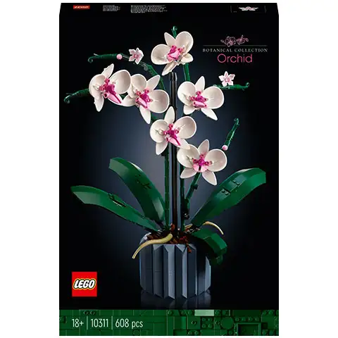 Uživajte v projektu, ki zahteva pozornost in s projektom izgradnje modela LEGO® Orhideja (10311), zasnovanem za odrasle ustvarite čudovito rastlino za svoj dom! Vzemite si čas za detajle rož bele in roza barve, kot tudi za izgradnjo vaze. Model navdihnjen po pravi orhideji vsebuje listov na osnovni plošči in 2 vijugasti zračni korenini, iz katerih lahko zgradite pravo dekoracijo. Izdelajte modro, narebreno vazo in jo nato napolnite z rjavimi LEGO komponentami, da ustvarite mešanico lubja, iz katere bi izrasla tudi prava orhideja.