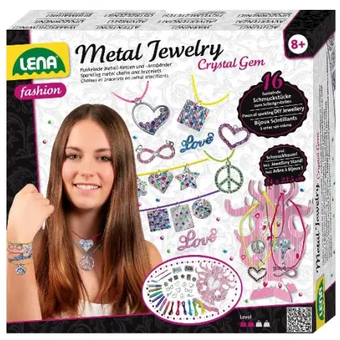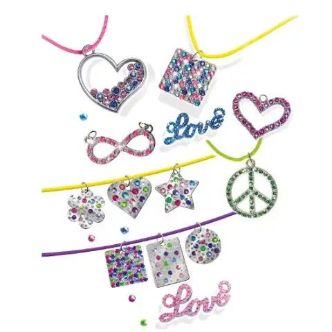 Kdor želi izdelovati edinstven in razkošen nakit, mu bo ta poseben set sigurno všeč. V paketu lahko poleg kovinskih medaljonov najdemo tudi 850 barvitih okrasnih kamnov, ki se lahko uporabijo po okusu, da nastanejo posebne stvaritve. V paketu je prisotno vse, kar lahko otroci med delom potrebujejo, tako tudi stojalo v obliki drevesa, primerno za shranjevanje lepila in izdelanega nakita.
