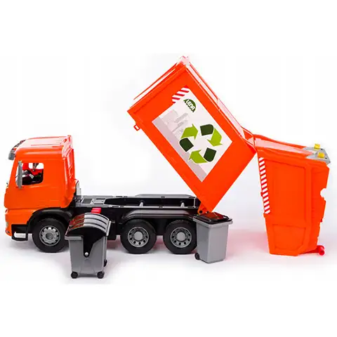 Smetarsko vozilo za selektivni odvoz smeti Mercedes-Benz je do potankosti podobno pravemu, zahvaljujoč s podrobnostmi bogati izdelavi pa vse pomembne funkcije delujejo in tako lahko otroci v svojem igralnem mestu izvajajo odvoz smeti. K kompletu spada tudi večji smetnjak, ki ga lahko z dvižnim mehanizmom na zadnji strani smetarskega vozila tudi zlahka izpraznijo in smeti odpeljejo na odlagališče. Certifikat LENA Spiel Gut je potrdilo o izjemno kvalitetnih osnovnih materialih in trpežni izdelavi, kot tudi o iz otrokovega stališča najpomembnejših igralnih doživetjih.