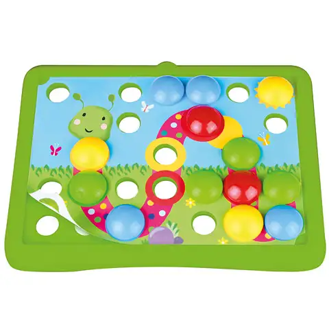 Odličen uvod v svet bucik bo ta super igralni komplet, v katerem je skupaj 36 barvnih, velikih bucik in tudi 7 šablon poleg osnove. Zasnova bucik je primerna prav majhnim rokam in tako lahko otroci igralne elemente varno razvrščajo. Z namestitvijo šablone s tematiko narave na igralno ploščo lahko sliko dopolnijo z bucikami in tako razvijajo svoje ročne spretnosti. Z bucikami LENA Mosaik se bodo malčki ne le dobro zabavali, ampak tudi razvijali!