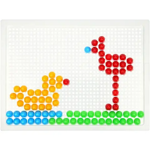 Otrokom nastaja vedno več kreativnih igrač za razvijanje spretnosti, med te uvrščamo tudi sete bucik Mozaik. Bistvo igre je v tem, da je treba majhne bucike umeščati v luknje na beli osnovni plašči in z njimi izoblikovati slike. Čepi so v štirih različnih barvah, modri, zeleni, rdeči in rumeni. Mozaična slika je vedno dober izziv za otroke in obenem tudi za odrasle, ki lahko malčke med igro učijo novih pojmov.