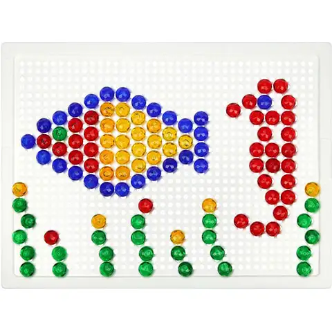 S pomočjo Mozaika lahko sedaj otroci poleg risanja, barvanja ustvarjajo tudi s plastičnimi bucikami. Ta igra za razvijanje spretnosti, med katero se lahko z umeščanjem pisanih bucik v luknjasto tablo kreirajo različni predmeti, živa bitja. Izkaže se za izvrstno igro, sestavijo se lahko namreč oblike, ki so lahko otrokom bodisi znane ali neznane, kljub temu ponujajo zanimivo možnost za razvoj moči domišljije.