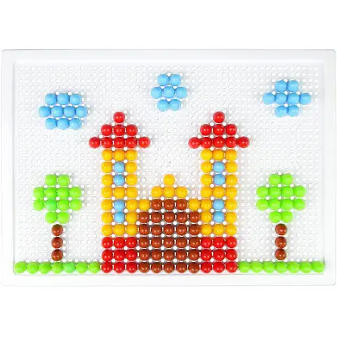 Z 200-delnim setom bucik Mozaik lahko tudi majhni otroci ustvarjajo čudovite slike. Na osnovni plošči je prostora za več oblik in tako se lahko iz ene risbe izmislijo zanimive pravljice. Bistvo igre je, bucike različnih barv vstavljati v luknjasto tablo. S to nalogo otroci razvijajo svoje ročne spretnosti, celotna aktivnost pa spodbuja tudi kreativnost. Bucike premera 10 mm so prosojne, na učinek tega se prikažejo bolj živahne barve.