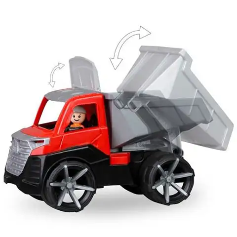 Ta super prekucnik, ki pozornost otrok prebudi z velikimi merami in živahnimi barvami, bo tudi že dvoletnim otrokom ponudil izjemne igralne možnosti. V naprej nagibni vozniški kabini vozila se nahaja figurica, ki se lahko od tam vzame ven. Enostavno se osvobodi tovora prekucnika, tovorni prostor se lahko namreč z enim samim gibom nagne nazaj. Certifikat LENA Spiel Gut je zagotovilo za visokokakovostne surovine in vzdržljiv dizajn kot tudi iz vidika otrok najpomembnejšo stvar, igralna doživetja.