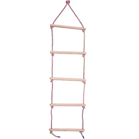 Lesena lestev z vrvjo je odlično za otroke, ki želijo splezati na hišico, ki so jo zgradili na drevesu in pa za ostale igre tudi lahko prav pride. Na zgornji del lestve je pritrjen kovinski obroč s pomočjo katerega lahko lestev privežemo, kjer jo pač potrebujemo. Lestev s petimi stopnicami bo zabavna za otroke in prispeva k osvojitvi ravnotežja.