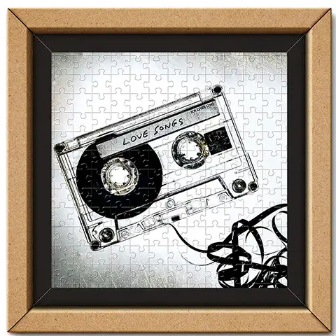 Za romantično dušo bo odlična izbira ta sestavljanka, katera upodablja staro kaseto s trakom, po napisu sodeč pa so na kaseti ljubezenske pesmi, vendar pa je trak ven povlečen in zavozlan poleg kasete. Črno-bela slika bo tudi na steni sobe izvrstno kazala, za kar se bo lahko uporabil tudi iz škatle izoblikovani okvir. Clementoni sestavni deli se zlahka sestavljajo in se v popolnosti prilegajo med seboj, zahvaljujoč brezkompromisni izdelavi in profesionalnemu tisku pa so sestavljene slike sapo jemajočo ostre in polne živahnih barv.